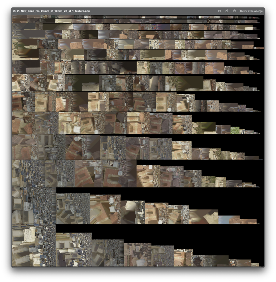 - assemblage automatique sur le terrain complètement raté. Je pense que c'est dû à un des scans perdu/corrompu et surtout des 3 avec le même noms
